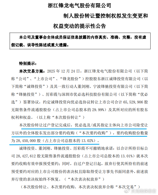 在优秀产品的不断加持下,优必选逐步登陆二级市场,据锋龙股份12月25日发布的多分公告,公司实控人已经变更为优必选。