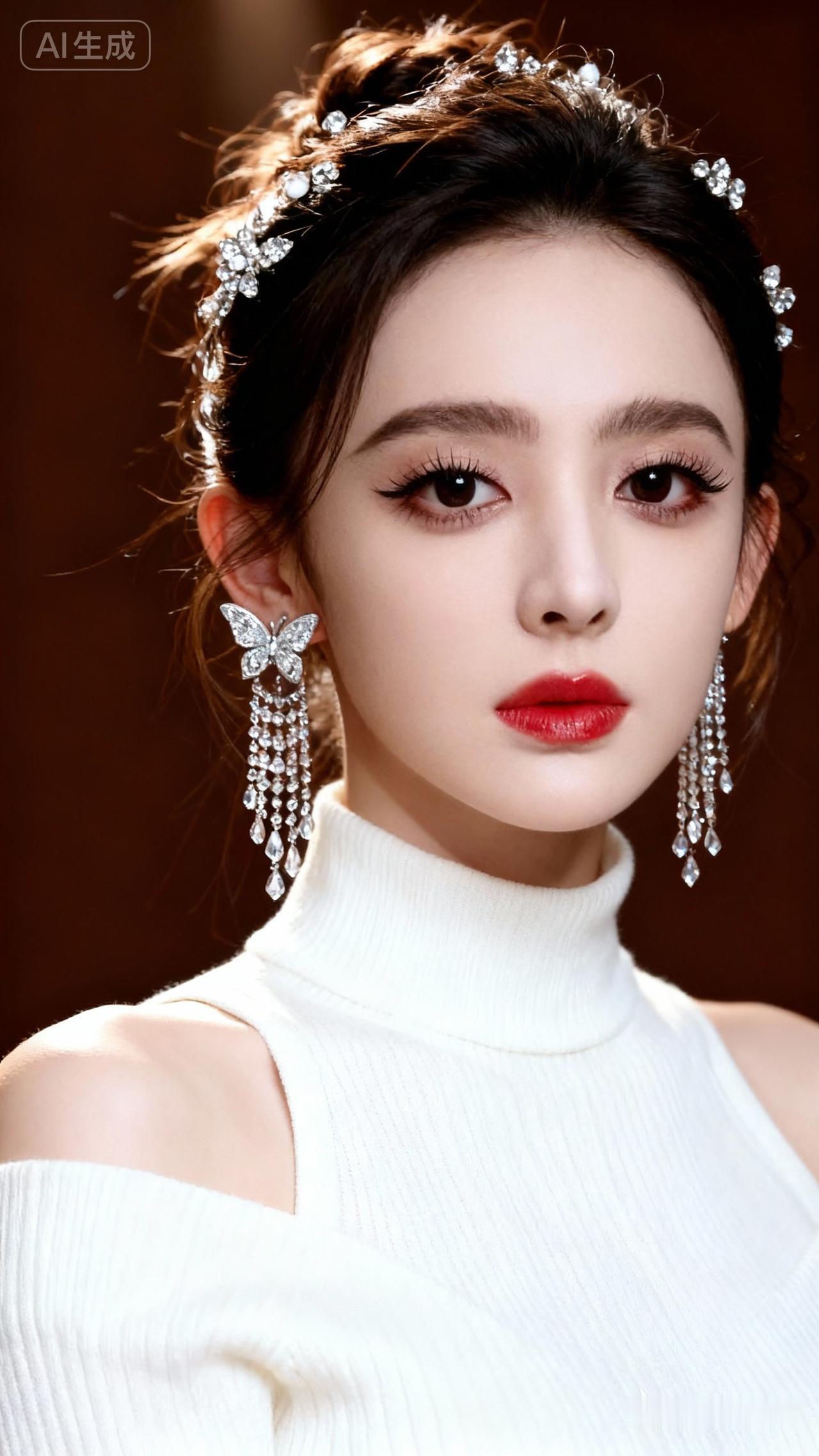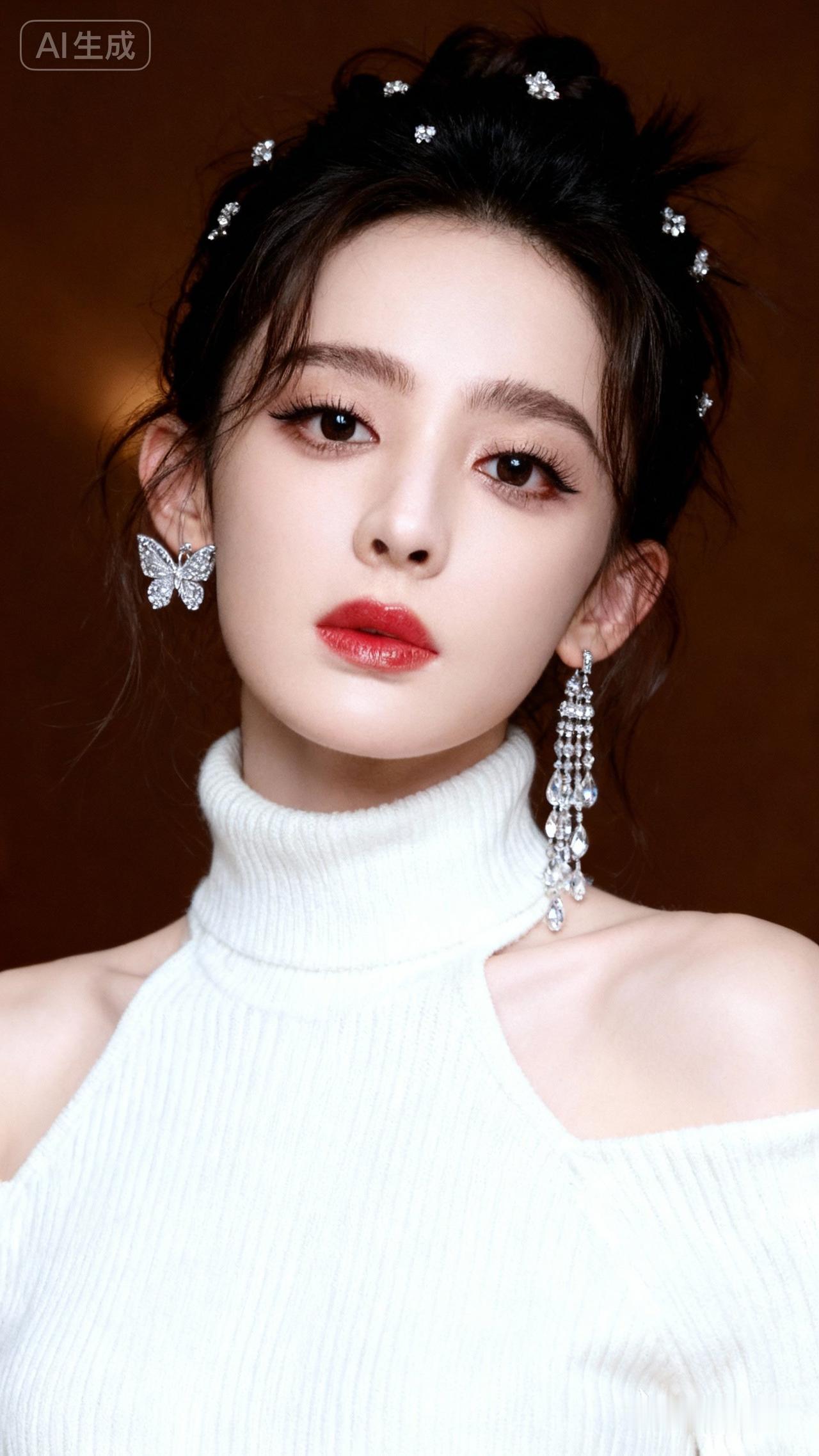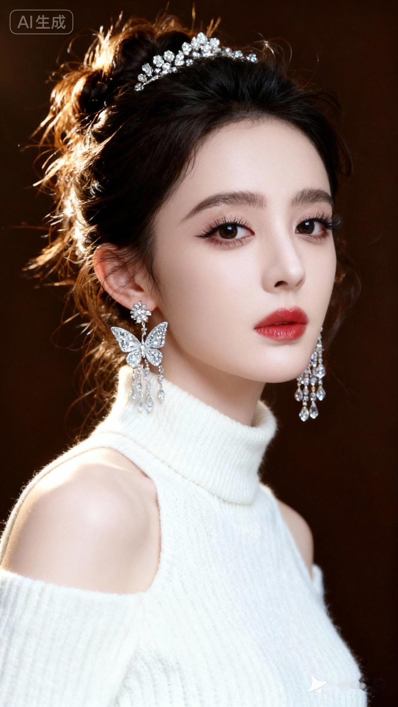 优雅白衣少女,闪耀蝴蝶耳环,梦幻氛围照。