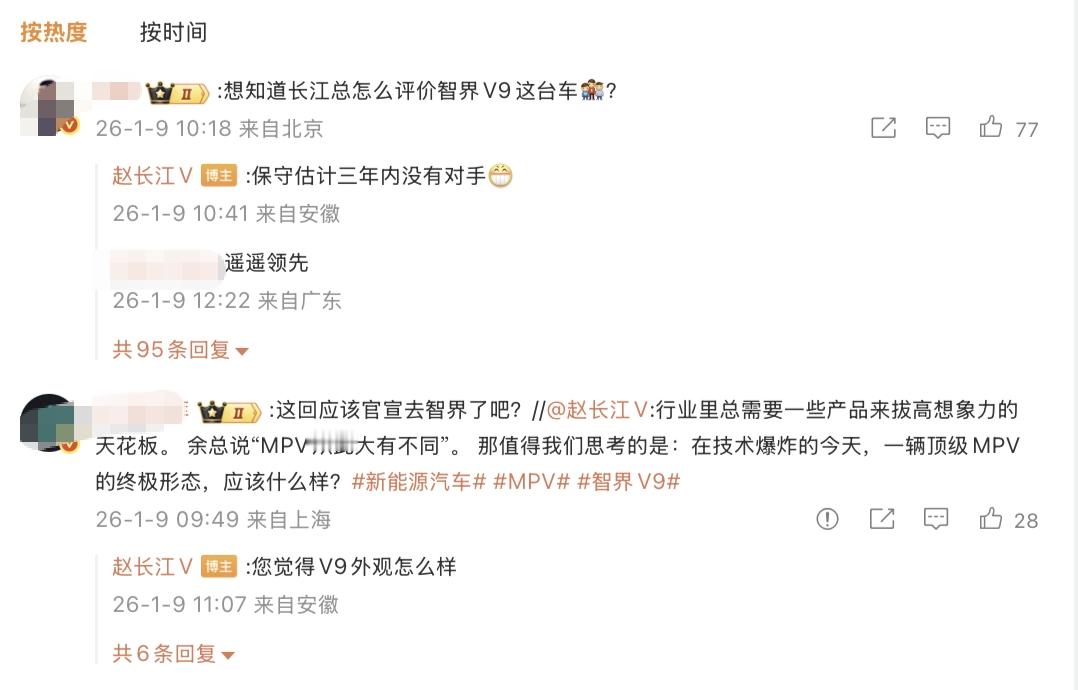 几天前赵长江就暗戳戳放信号,转发华为余承东余承东智界V9相关微博,还称“智界V9保守估计三年内没有对手”,IP地址也显示为安徽,而奇瑞总部就在芜湖,懂的都懂。