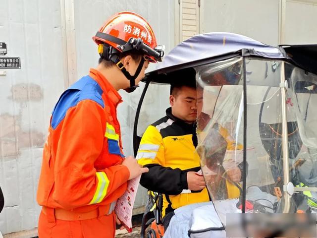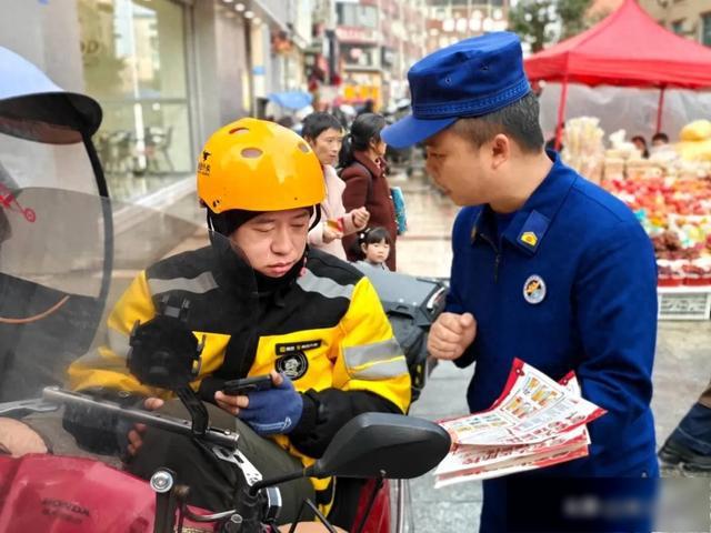活动中,消防宣传人员在县城主要街道、商圈配送聚集点等地,向正在休息或等餐的外卖骑手、骑行群众发放《电动自行车消防安全手册》,结合近年来有关电动自行车的火灾案例,详细讲解电动自行车进楼入户、飞线充电、堵塞占用消防通道的危险性。同时,普及正确扑救初期火灾和快速逃生自救等消防安全常识,并再三叮嘱,在大型商场或者人员密集场所取送餐时,不要将电动自行车停放在疏散通道和消防车通道。