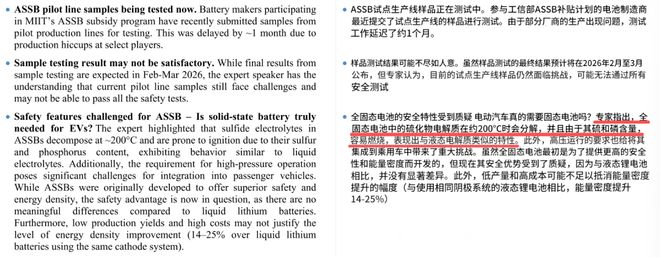 然而事实上呢?根据著名投资公司J.P.Morgan的一份专家电话会记录,宁德时代、比亚迪等六家电池厂家提供的全固态电池样品,可能无法通过所有安全测试。