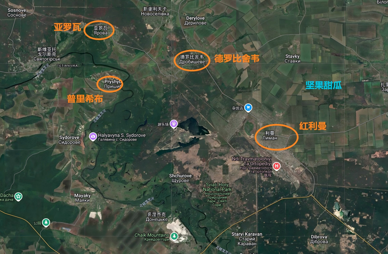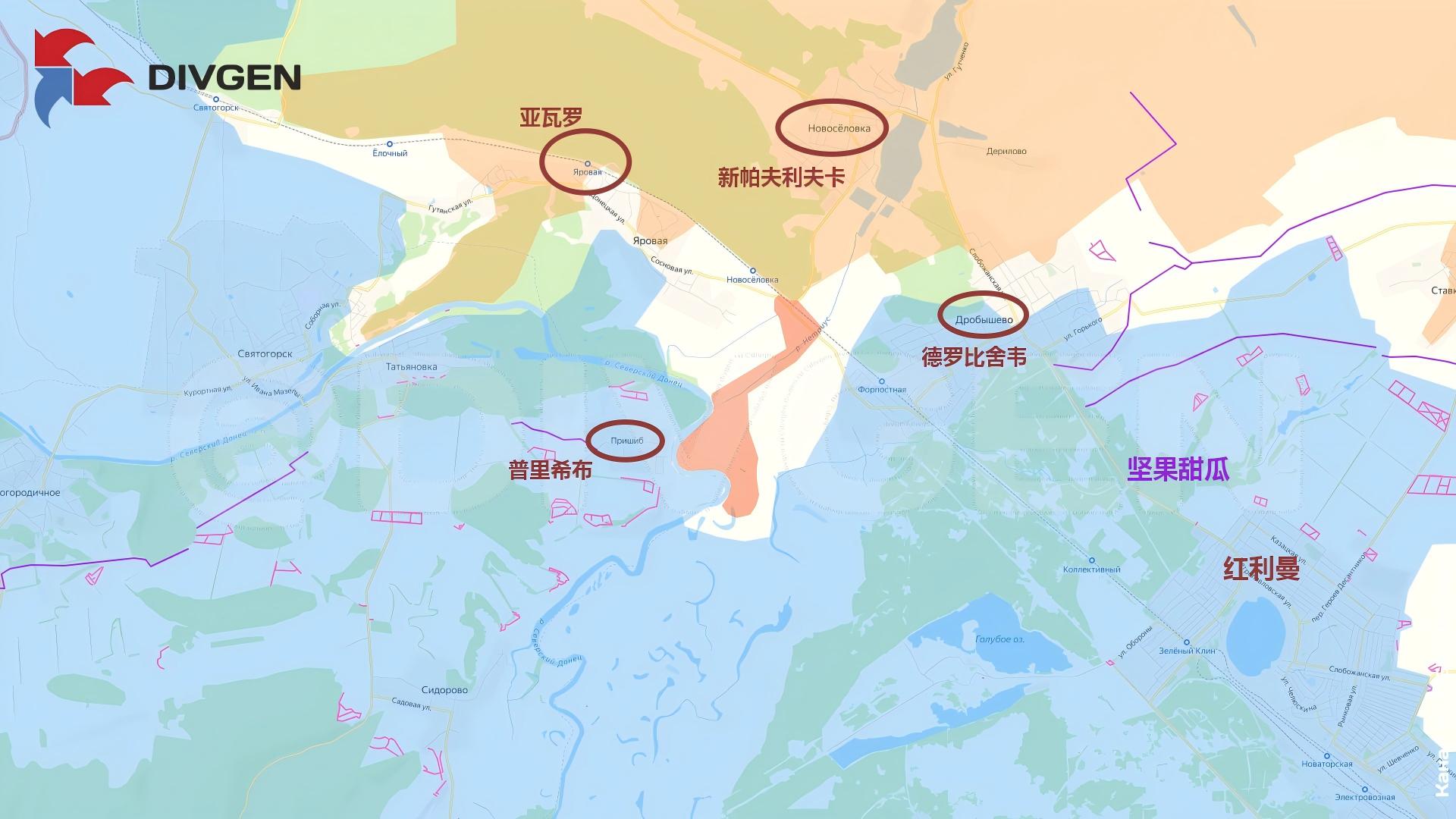 红利曼方向 ,俄军西部集群从亚瓦罗附近伸出一个触角,直达北顿涅茨克河,对面就是普