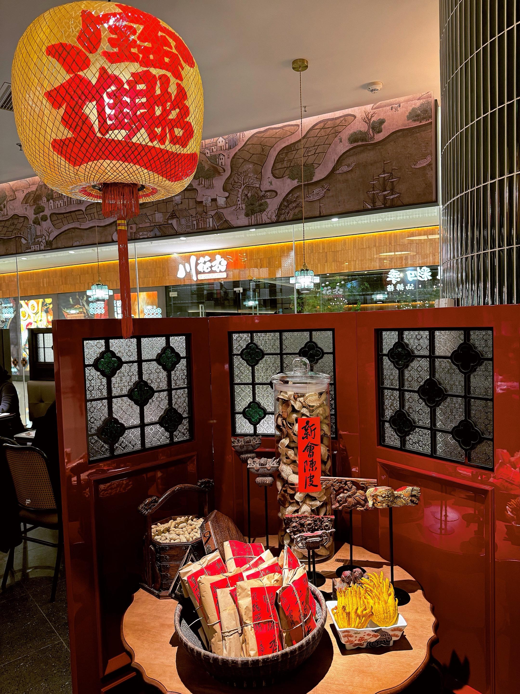 环境更是氛围感拉满,红韵灯笼搭配雕花窗棂,陈皮和茶礼错落陈列,暖光衬着中式雅座,不管是情侣约会还是朋友小聚都超有格调~