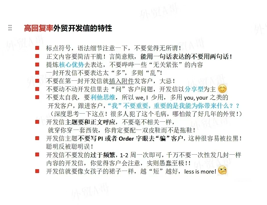 高回复率的开发信特性