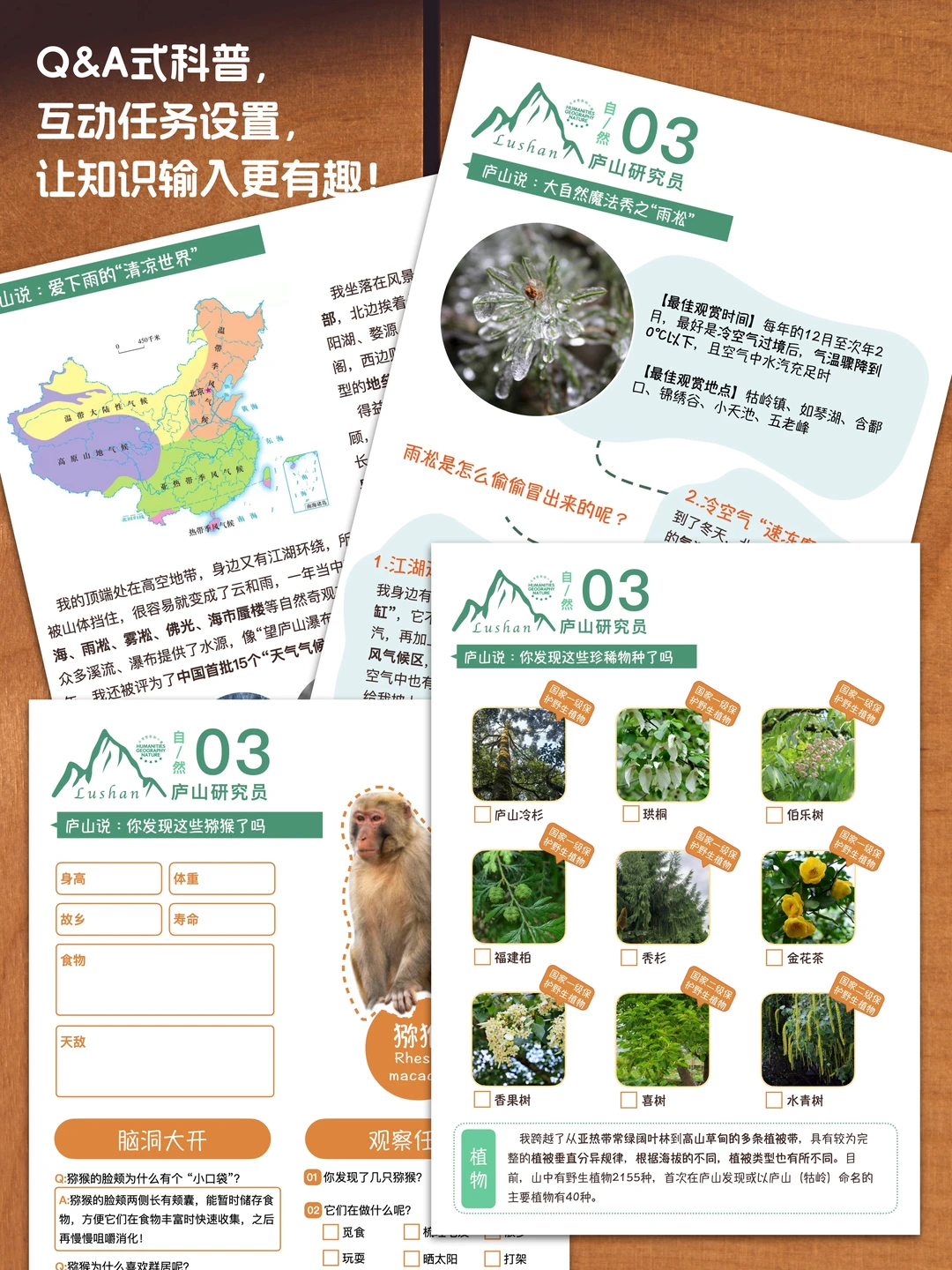 出发前,我为小翼设计了一套“庐山研学科普手册”(见图8~10)