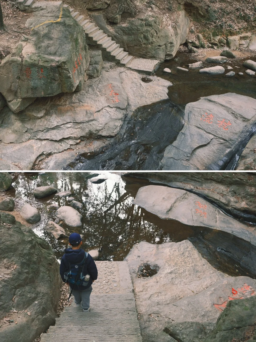 能看到①朱熹真迹“枕流”石刻