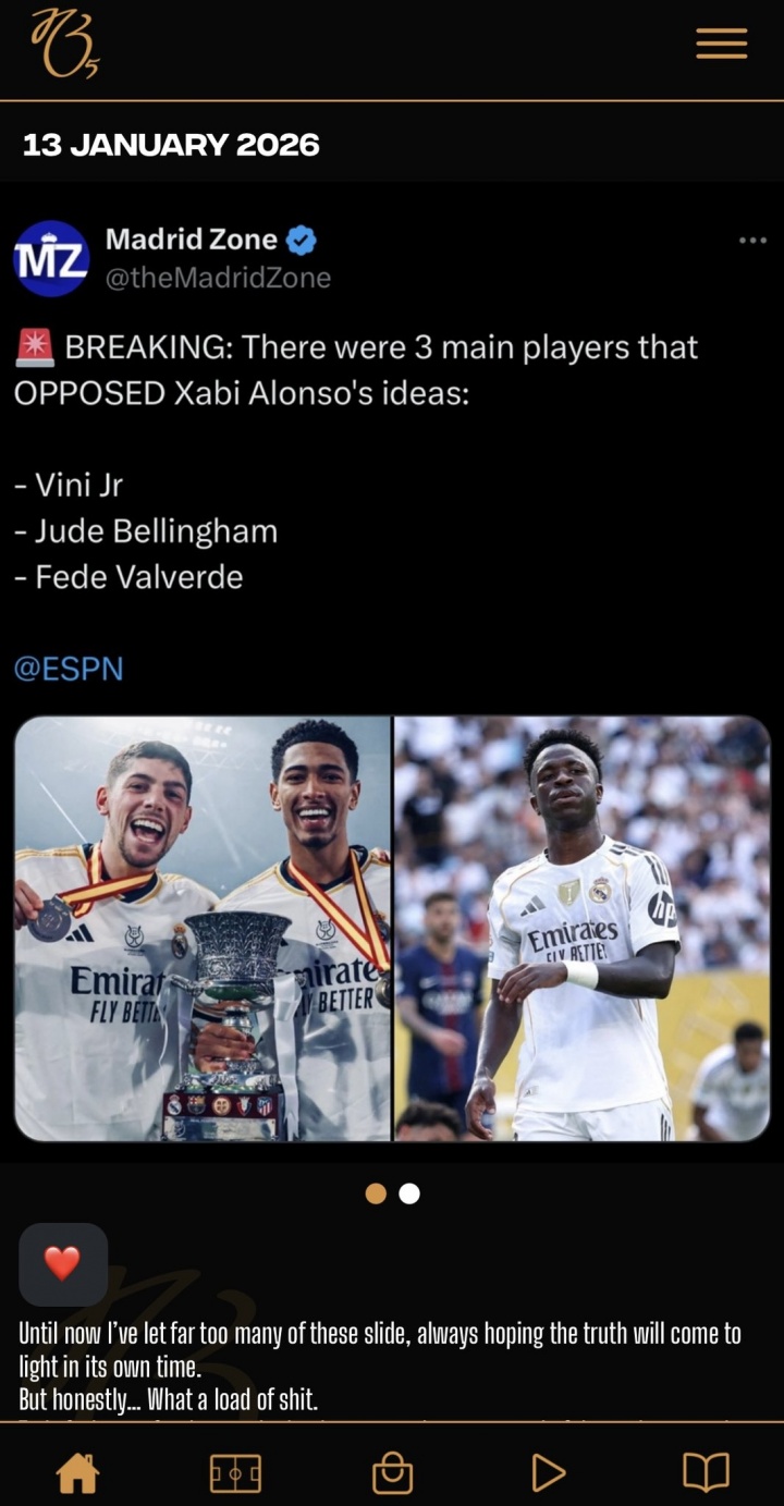 直播吧01月14日讯ESPN报道哈维·阿隆索下课内幕,表示维尼修斯、贝林厄姆和巴尔韦德不愿意接受阿隆索的想法,贝林厄姆本人作出回应。