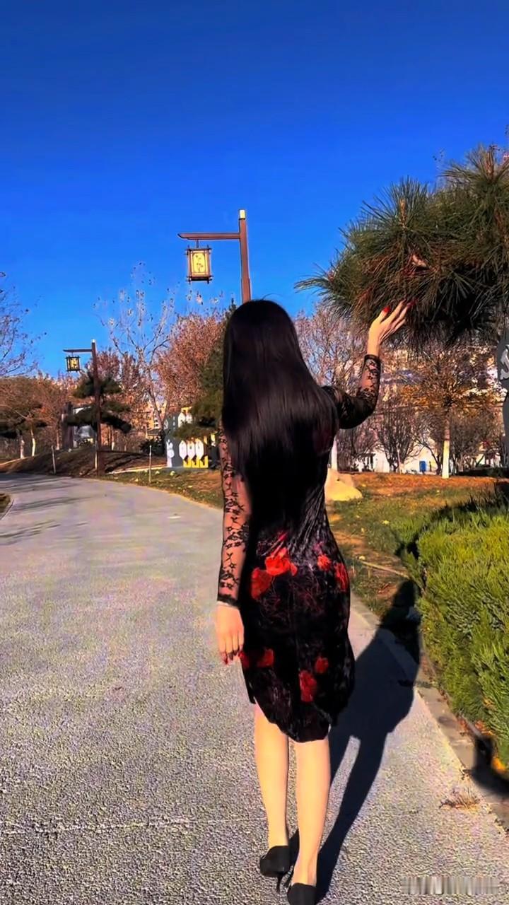 国风旗袍的背影杀太绝了!丝绒印花裙配蓝天,这身材曲线美到心巴 谁能拒绝国风旗袍与蓝天相映的绝美画面?画面中的女子身着黑红印花丝绒旗袍,蕾丝长袖的设计增添了几分妩媚,在湛蓝天空下的园林小道上,将极致的身材曲线展现得淋漓尽致。 修身的旗袍完美贴合腰臀线条,饱满的臀部曲线与纤细的腰肢形成鲜明的视觉冲击,丝绒材质的光泽感搭配红黑印花,既有古典旗袍的温婉韵味,又透着现代女性的性感张力。乌黑的长发垂落背后,与翠绿的植被、复古的路灯相映成趣,行走的瞬间,抬手轻触松枝的动作自然又优雅,仿佛从古典画卷中走出的佳人。 这组随拍没有刻意的摆拍,却把国风穿搭的美感与身材优势融合得恰到好处。你觉得丝绒旗袍最能凸显女性的哪种魅力? 国风旗袍 丝绒裙穿搭 背影杀 园林随拍