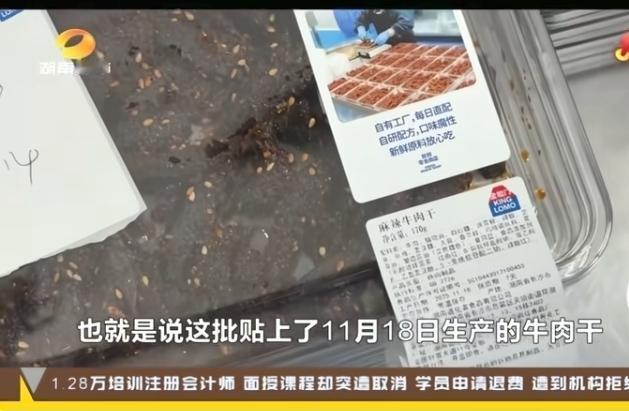 金粒门牛肉干生产日期造假引争议! 近日,湖南都市频道曝光金粒门食品的麻辣牛肉干存在生产日期造假问题。这款净含量170克的牛肉干,外包装标注11月18日生产,实际生产日期为11月14日,提前了四天,而产品保质期仅7天。 篡改日期让已生产四天的食品以“新鲜货”面目上架,严重误导消费者,违反食品安全标注规范。更讽刺的是,产品宣传卡片还标榜“新鲜原料精心吃”,与造假行为形成鲜明反差。 作为生产方,金利门食品此举既损害品牌信誉,也让销售该产品的全家便利店陷入信任危机。食品安全是底线,期待监管部门严查,督促企业守住诚信经营的准则。