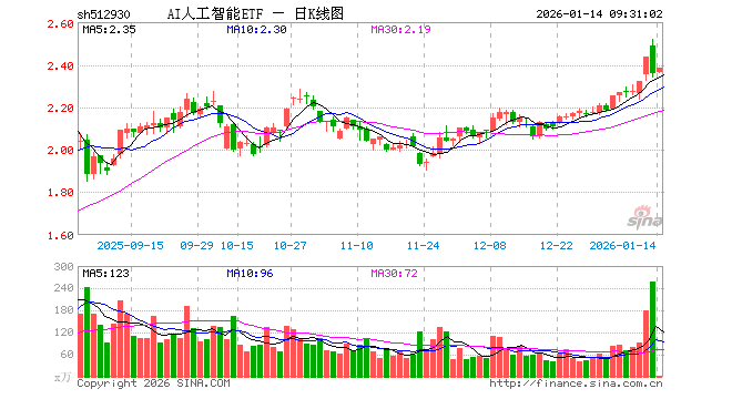 1月14日,AI人工智能ETF(512930)开盘涨0.30%,报2.363元。AI人工智能ETF(512930)重仓股方面,新易盛开盘涨1.25%,中际旭创涨1.64%,寒武纪涨0.85%,澜起科技涨1.92%,中科曙光涨0.00%,科大讯飞涨0.61%,豪威集团跌0.14%,海康威视涨0.49%,浪潮信息涨0.84%,金山办公跌0.22%。