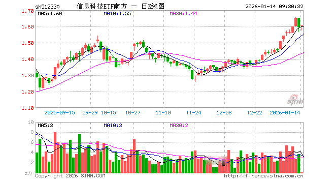 1月14日,信息科技ETF南方(512330)开盘涨0.38%,报1.600元。信息科技ETF南方(512330)重仓股方面,胜宏科技开盘涨1.22%,华工科技涨0.05%,芯原股份涨0.63%,指南针跌0.87%,通富微电涨1.93%,润和软件涨0.96%,瑞芯微涨0.03%,长川科技涨0.83%,协创数据涨0.26%,华海清科跌1.73%。