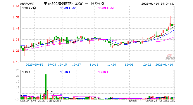 1月14日,中证500增强ETF汇添富(560950)开盘涨0.28%,报1.426元。中证500增强ETF汇添富(560950)重仓股方面,东吴证券开盘跌0.22%,胜宏科技涨1.22%,华工科技涨0.05%,深科技涨1.09%,长江证券跌0.46%,神火股份涨0.92%,科沃斯跌0.02%,广联达跌0.21%,亨通光电跌0.04%,高德红外涨0.00%。