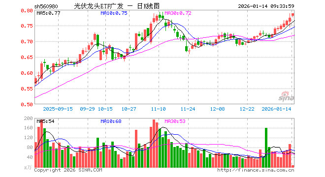 1月14日,光伏龙头ETF广发(560980)开盘涨0.77%,报0.781元。光伏龙头ETF广发(560980)重仓股方面,阳光电源开盘跌0.40%,特变电工涨3.40%,TCL科技涨2.31%,正泰电器涨0.00%,晶盛机电跌0.05%,德业股份跌0.44%,捷佳伟创涨0.36%,科华数据跌0.02%,锦浪科技跌0.64%,阿特斯涨0.12%。
