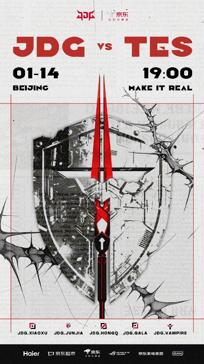 TES vs JDG赛前海报:冰封;新赛季第一战!