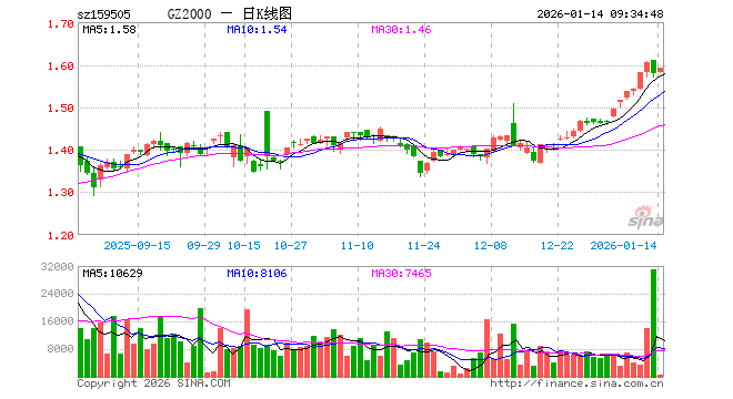 1月14日,国证2000指数ETF(159505)开盘涨0.13%,报1.582元。国证2000指数ETF(159505)重仓股方面,上海洗霸开盘跌0.18%,剑桥科技涨0.93%,东方钽业涨0.60%,派能科技涨0.18%,皖维高新跌0.16%,绿盟科技涨0.49%,普天科技跌0.71%,银龙股份涨0.00%,联赢激光跌0.51%,精工科技涨0.00%。