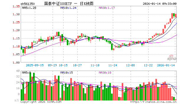 国泰中证500ETF(561350)业绩比较基准为中证500指数收益率,管理人为国泰基金管理有限公司,基金经理为黄岳,成立(2021-08-18)以来回报为28.38%,近一个月回报为13.35%。