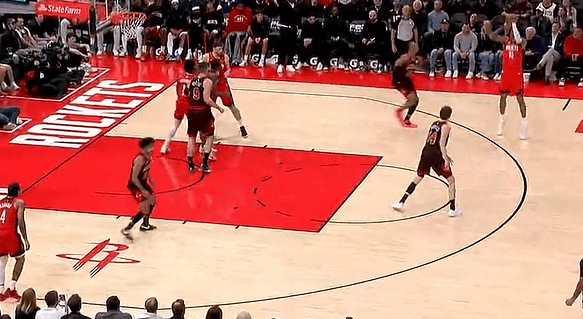 比赛第四节,贾巴里关键时刻命中三分,近三场比赛的首记三分。