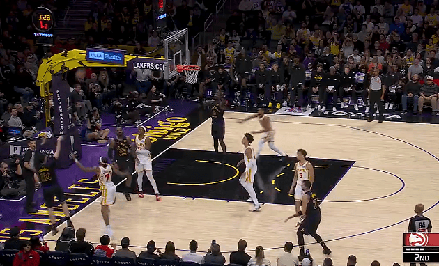 虎扑01月14日讯NBA常规赛,湖人对阵老鹰的比赛正在进行中。