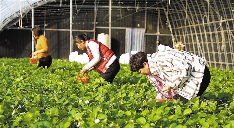 游客在卡尔叔叔幸福农场采摘草莓。本报记者张春娥本报通讯员张琛摄