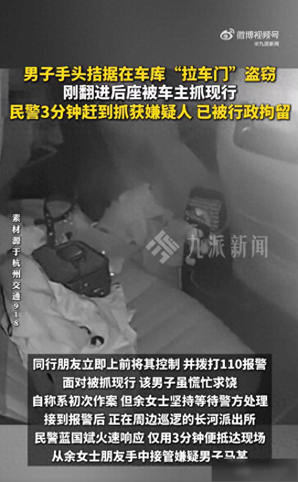 日前,杭州市民余女士(化名)与朋友驾车到某综合体购物。停车后,因一时疏忽,未确认车门是否锁闭便离开。约20分钟后,余女士返回车库,走近车位时发现车辆尾灯异常亮起,上前查看竟发现一名陌生男子正坐在车辆后座翻找物品。同行朋友立即上前将其控制,并拨打110报警。