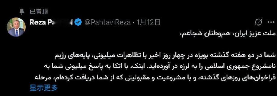 美媒:特朗普特使秘密会见伊朗末代王储! 1月14日,美国Axios新闻网报道: “上周末,特朗普中东特使威特科夫与流亡美国的伊朗末代王储巴列维秘密会晤,系伊朗近期抗议后美与伊反对派首次高层接触,同日白宫国安团队商讨伊朗对策,白宫发言人称暂未进入军事行动决策阶段,但难预判特朗普立场,巴列维自1979年伊斯兰革命后流亡,近期频繁煽动伊朗骚乱、呼吁美军事干预,还吹捧特朗普;特朗普对伊放狠话却未公开支持他,其名字在伊抗议中出现,被解读为部分民众不满现状的符号。” [机智]美密会伊朗末代王储,又要重施干涉颠覆的老套路!巴列维流亡半生,没民意没根基,借伊朗骚乱跳梁,攀特朗普谋复辟,吹捧其为和平之人,谄媚到骨子里!特朗普放狠话唬人,却不公开背书,算盘精得很:想搅乱伊朗,又怕引火烧身,回望1953年,美策动政变扶巴列维王朝,终酿伊斯兰革命大祸,如今还想重蹈覆辙,抗议中他是符号,是民众对现状不满,绝非盼王朝复辟,美国妄图推傀儡夺权、掌控中东,霸权干涉必留祸根,这图谋终将被伊朗人民戳破,竹篮打水一场空!