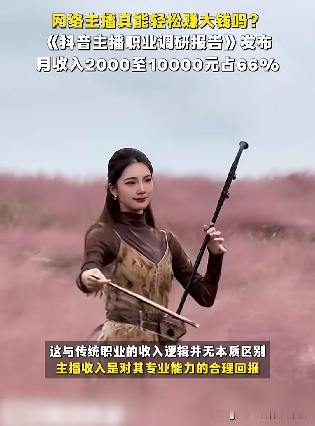 是不是做了网络主播,收入就能月入过万?据《抖音主播职业调研报告》显示,月收入2000至10000元占66%!也就是说六成网络主播的收入不过万,基本徘徊在两三千左右,有的甚至更低。 网络主播的收入主要来自虚拟礼物打赏,榜一大哥越多,获得的收入更多。当然,因为有一半以上的抽成,即便是大量的礼物打赏,主播能分到的钱也是少之又少。如果主播依赖流量垄断、品牌溢价及团队运作,就会变成头部主播,但这类主播很少,仅占0.4%,月入超10万元,年收入可达千万至数亿元。 大量主播都是尾部主播,她们的收入月均不足5000元,超60%收入不如外卖员。他们依赖不稳定打赏或带货佣金,新人时薪不足20元。所以网络主播看似光鲜亮丽,轻轻松松,其实要挣到更多的钱,会更卷,更累,因此很多新人很难坚持下去。