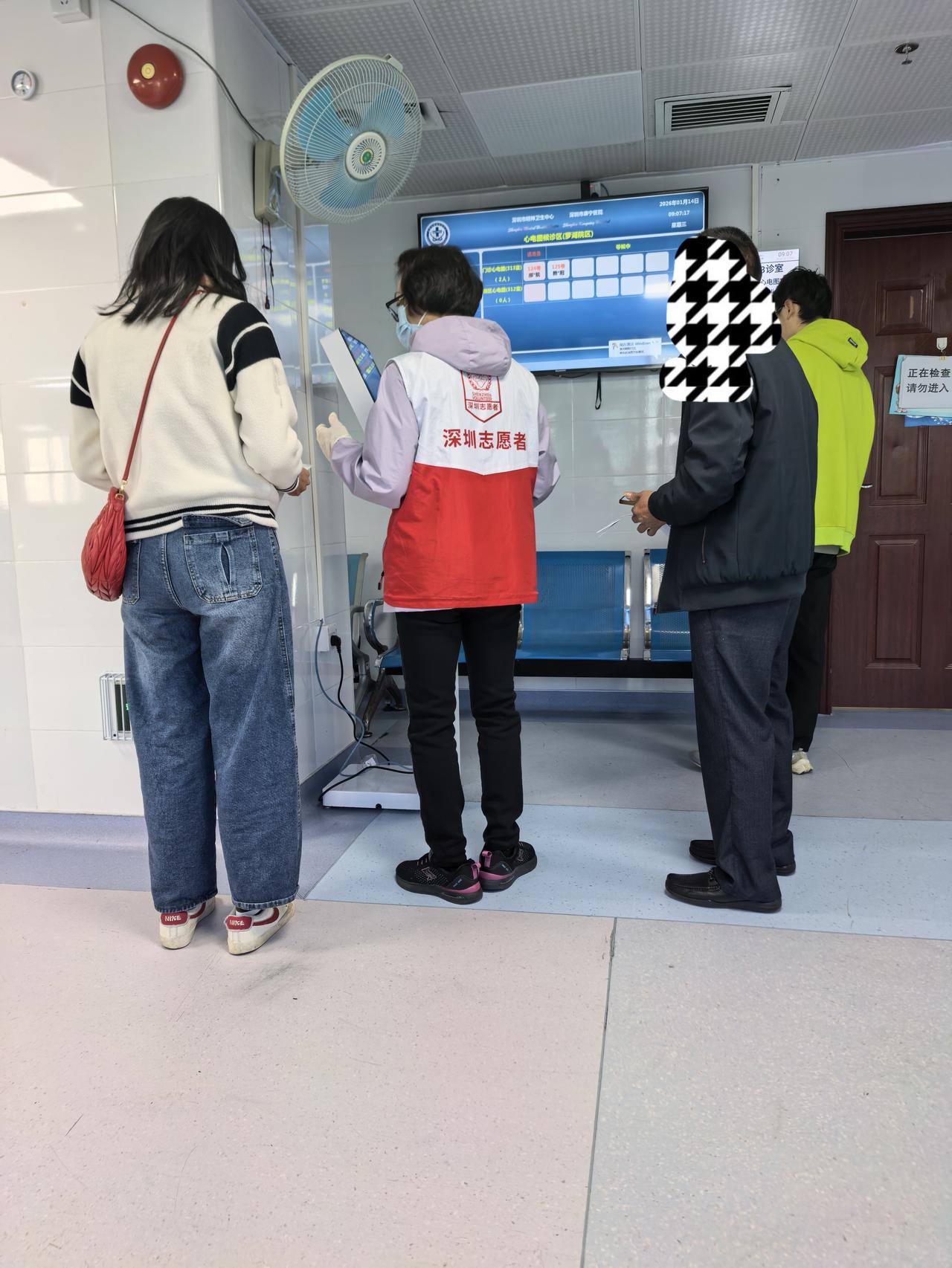上午去康宁医院,我年近七十的人,真感受到了温暖。在门诊楼大庭,三楼检查室自动取号机旁,都有“深圳志愿者”。她们主动上前帮患者取号,指引要检查项目的科室,非常暖心。要不是她们热情帮助,不知要非多大周折,花多少时间。在此,真心感谢深圳康宁医院这群热心的志愿者!