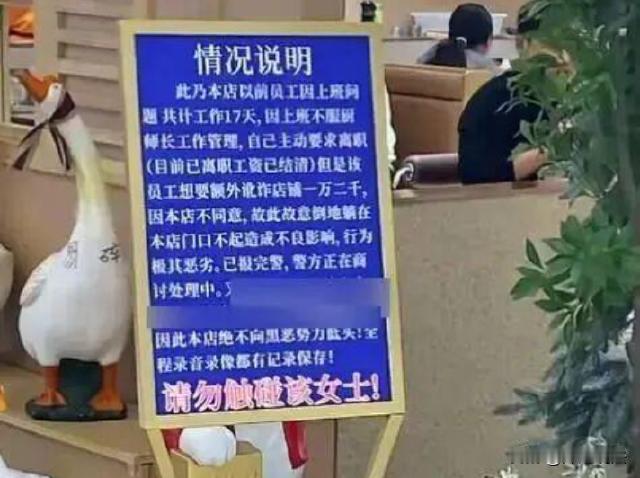 河南,真是碰到狠人了!一女子躺人家店门口,头部用帽子盖住,整整赖了4天趴地不起。店家没辙,在女子旁边树立一个牌子,说明了情况:女子是本店员工,自行离职,但是如今又过来讹诈1万2千元,不给就耍赖。很多部门人员过来沟通,但是女子也不起身、也不说话,遇到这样的无赖,可该怎么办? 极目新闻1月14日报道了这则新闻。 据报道称,趴地不起的这位女子,原本是店内员工,多次不服从管理,之后自己主动离职。谁知道之后又折返回来,要求店家赔偿1万多工资给她。协商不成,就出此下策,也实在令人费解。 究竟是无赖还是狠人呢?女子以为挡住脸,这件事就不丢人了吗?到底是劳动者的问题、还是餐馆这边的错,我们来看下案件详细。 事发于河南商丘的某家餐馆,一位女子来到这家餐馆里上班,从事门店面食类制作工作。 根据餐馆工作制度规定,要求10点上班,但是女子不服从管理,9点就来到公司。领导也多次跟她商量,让她按时到班就行了,但是女子仍然我行我素。 后来工作的时候,厨师长检查面点工作,发现女子做的大饼,面粉发酵过度,当时顾客已经投诉了。 发生这件事,厨师长有些生气,沟通的时候指责过于严厉,女子当时就跳脚,说不想干了。 厨师长的处理态度也过于激进,直接就对着女子喊:“不想做了是吧,那就滚。” 女子当时就围裙一摘,转身就走。而事后厨师长也反省了自己的态度,感觉当时脾气过头了,说了不得当的话。 就在女子离开之后没多久,几天后,她又折返回来。 她找到餐馆的负责人,跟其沟通想要协商赔偿的事情。 负责人指出,你是自己主动辞职的,因此是没有赔偿补贴的。而且负责人也跟女子说:“你自己辞职,工资也已经结清,所以不存在再次赔偿。” 对此,女子可不答应,当天就没有走。而是帽子一戴,把脸挡住,直接就趴在了餐馆门口。 直接躺在店门口维权?这样的方式是否能行得通呢? 有网友路过这家餐馆的时候,就把女士的行为拍摄放到网上。店铺负责人看到关注的人越来越多,就树立了一块牌子放在旁边。 牌子上面书写:大家不要搭理这位女士。 然后店铺还把事件的林林总总都书写在上面。可是,看热闹的人却越来越多,负面影响也比较大。 门店也表示,因为女子趴在大门口,客流直接减半,业绩大片下滑。 就在店铺做直播解释这件事的时候,女子仍然趴在门口,一动不动。 之后门店负责人、商场负责人、店内其他工友都过来劝解这位女子,但是她都不听,从早躺到晚,这可真的是碰到狠人了。 事件发酵之后,相关部门也来到了这家餐馆,工作人员也对趴地女子进行劝说。谁知道,女子也不说话、也不起身,主打一个,死磕到底。 最后,无奈的店家只能选择了拨打110,请办案人员过来帮忙协调处理。这个案子,仍然在侦办之中。 本案释法:女子无视公司制度、不服从管理,气的自行离职,之后又这番要求公司赔偿损失补贴。这个诉求可以得到支持吗?另外,趴在人家店门口维权,这个方式是否正确呢? 根据《劳动合同法》第39条规定,员工因为严重违纪,如不服从管理被解除合同,或者员工自己主动辞职,公司则无需支付经济补偿。 当然,如果公司存在违法行为,如没有签订合同、没有缴纳社保,员工可以主张赔偿,但是需要提供证据。 本案中的这位劳动者,工作的时候,自己无视公司制度,不服从管理,跟领导争吵主动离职,公司已经结清工资,根据法律规定,之后就不需要再支付经济补偿。 而女子仍然想要公司支付经济赔偿,否则就趴在门口不起来,这个维权方式不正确,甚至可能违反了《治安管理处罚法》。最后可能维权不成,自己还涉嫌违法。 如果想要实现自己的利益,可以走合理的方式维权,采用这样激进的方式,反而适得其反。 这件事,不要认为女子无理索要赔偿经就不恰当,厨师长态度过火也有一定原因,这样去维权这个做法肯定也不正确。 事件还是需要双方坐下来,请相关部门一同来协调处理,才能得到一个妥善的解决方案。 对此,大家都怎么看呢?