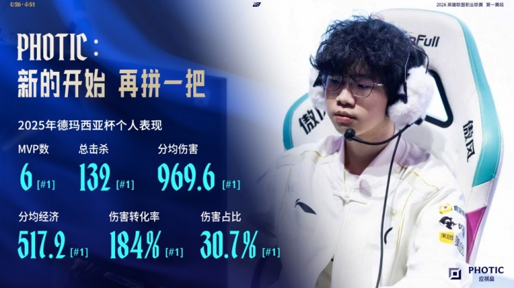 photic加入IG后,在2025德玛西亚杯个人表现亮眼。