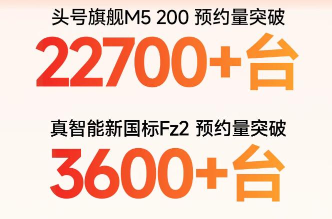 九号的新款旗舰M5 200与新国标电动车FZ2即将开始销售,时间为2026年1月16日20点,其中一款是头号旗舰高端电动摩托车,一款是符合新国标的车型,从2025年12月22日19点到2026年1月14日9:00,九号 M5 200预约台数为22700+,九号FZ2预约台数达到3600+。 九号 M5 200仍然采用了M系列的机甲车身,该车架经过达喀尔赛车团队调校,配置72V90Ah高性能大单体锂电池,不仅动力性能强悍,而且续航里程远,另外,该车型还首发搭载了凌波os系统,拥有当前最强的智能化功能。当然了,该车型的价格也不低,达到了18999元想。 九号 FZ2同样是一款值得期待的新车型,采用了机甲的外观,标配RideyFUN AIR智驾系统,而且搭载ALC全境光幕照明系统,标配48V24Ah高性能锂电池,是年轻人日常代步的新款车型。