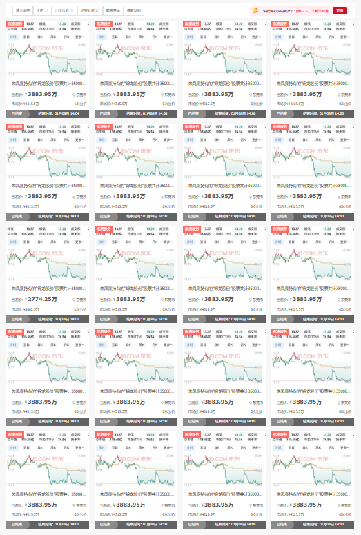 然而,法拍结果却意外”爆冷“。自然人曹贤斌和王梓旭分别以底价竞得250万股和350万股。其余18个标的全部流拍,流拍股份达6300万股,流拍率超过90%。