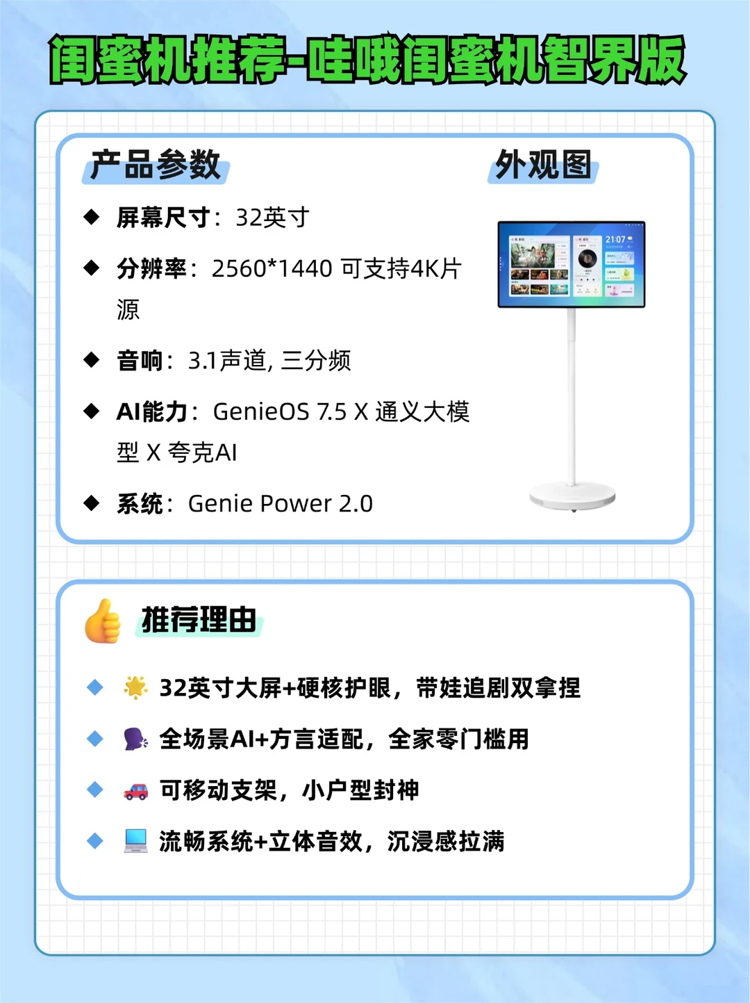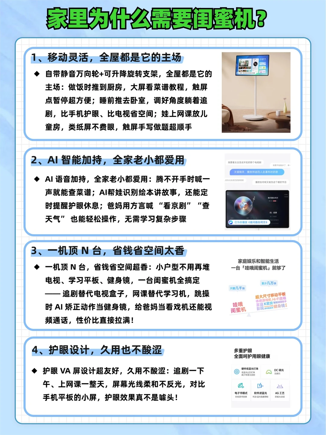 不管是小户型、有娃家庭还是和父母同住,这款闺蜜机都能精准适配需求!一机多用还护眼,性价比直接拉满~ 正在纠结闺蜜机的宝子,闭眼入这款不踩雷!