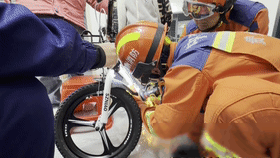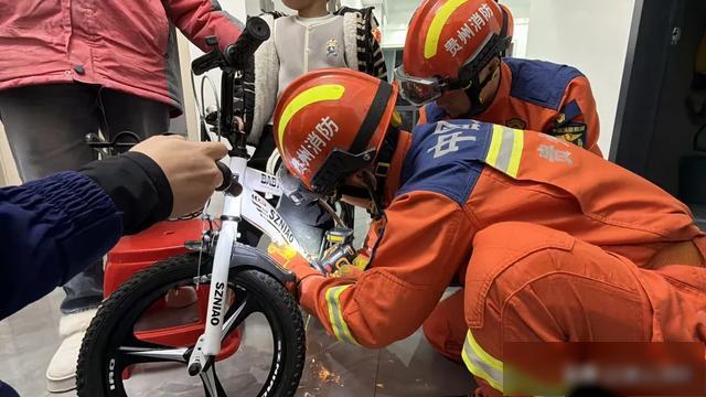 贵州正安:男孩脚卡自行车踏板缝隙消防破拆脱困