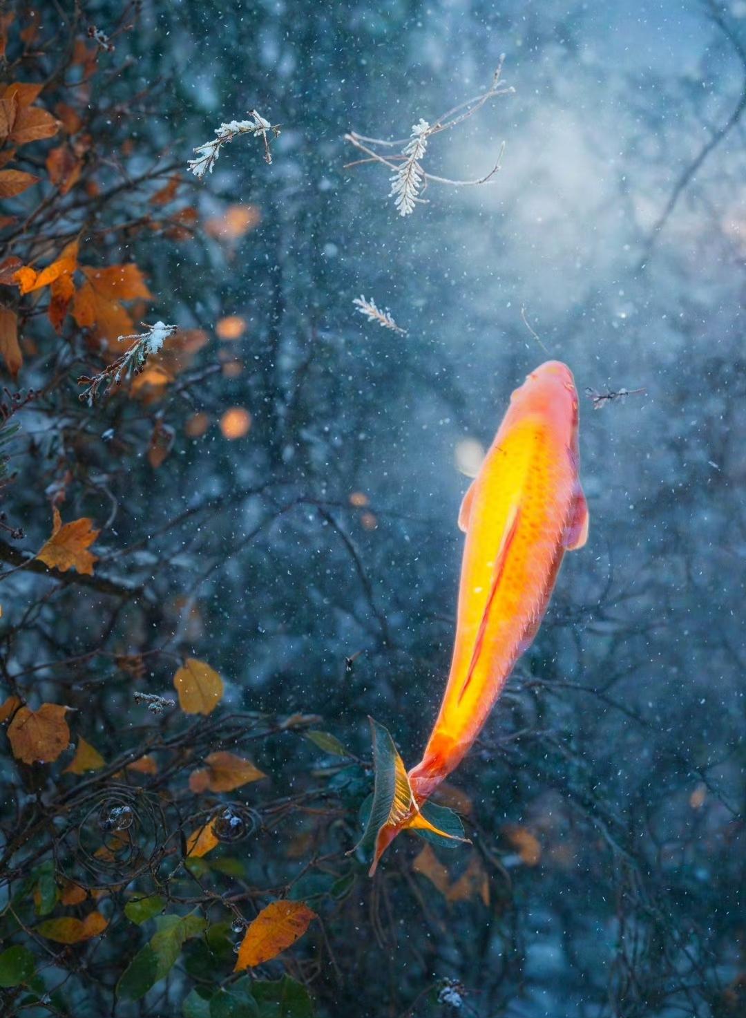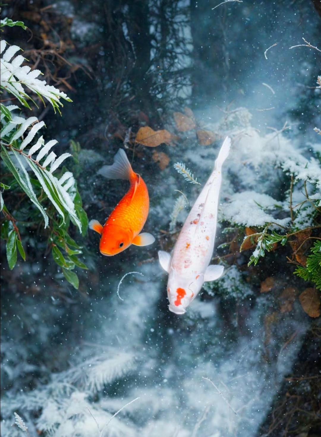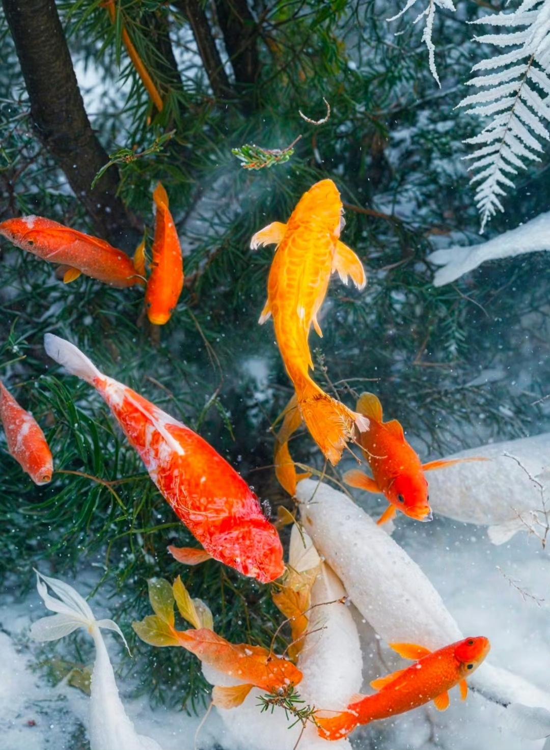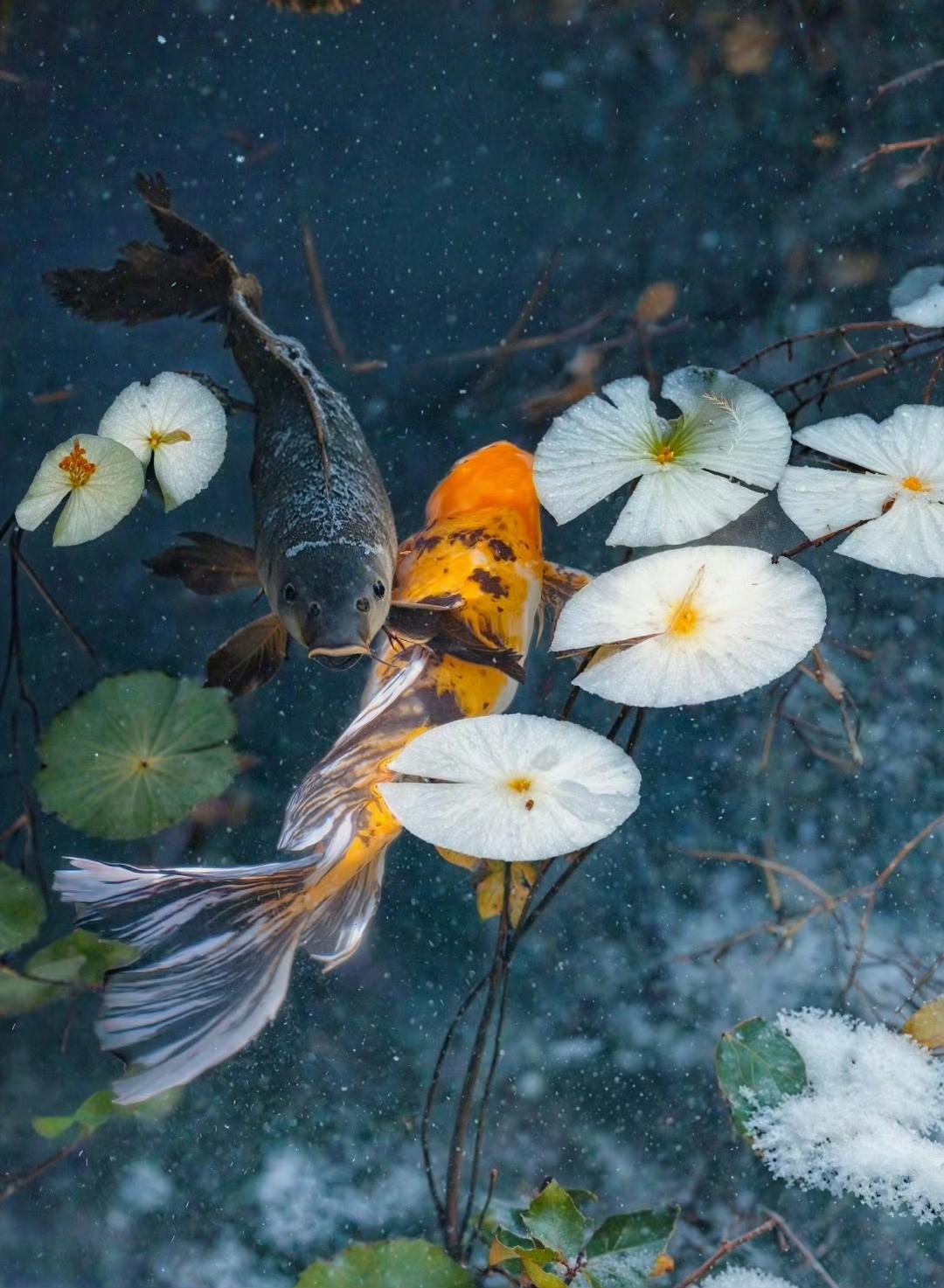 “ 雪落湖心鱼弄影 … ” 摄影 素材
