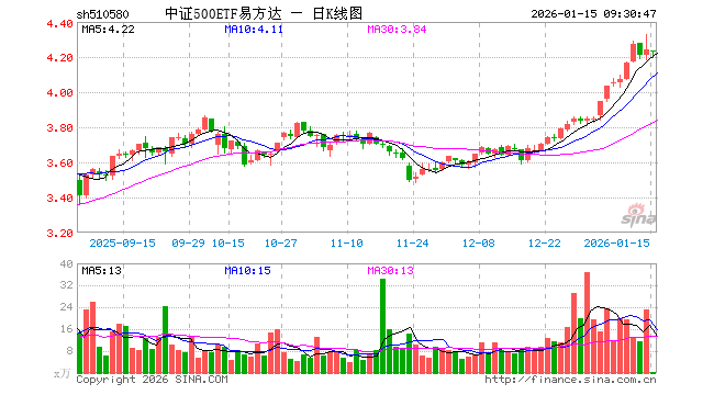 1月15日,中证500ETF易方达(510580)开盘跌0.21%,报4.232元。中证500ETF易方达(510580)重仓股方面,胜宏科技开盘跌1.39%,华工科技跌1.00%,先导智能涨1.95%,芯原股份涨0.85%,指南针跌0.70%,巨人网络涨0.96%,卧龙电驱跌0.13%,欣旺达跌0.12%,赤峰黄金跌0.25%,通富微电跌1.00%。