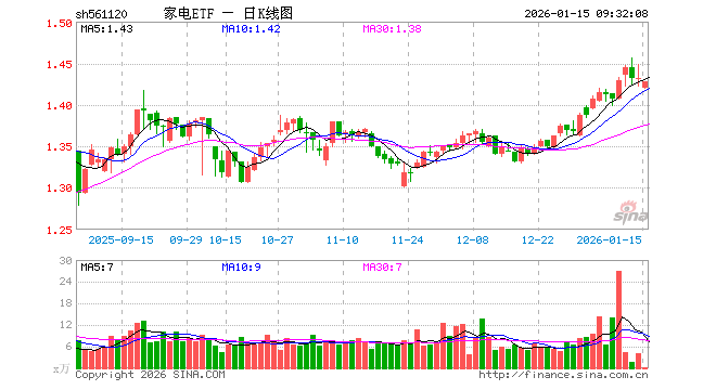 家电ETF(561120)业绩比较基准为中证全指家用电器指数收益率,管理人为富国基金管理有限公司,基金经理为牛志冬,成立(2022-01-25)以来回报为43.31%,近一个月回报为6.17%。
