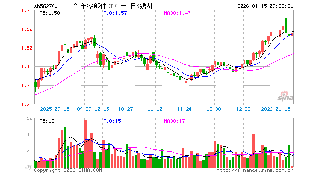 1月15日,汽车零部件ETF(562700)开盘涨0.00%,报1.558元。汽车零部件ETF(562700)重仓股方面,汇川技术开盘跌0.08%,福耀玻璃跌0.07%,三花智控跌0.49%,拓普集团跌0.54%,德赛西威涨1.38%,长盈精密跌0.94%,赛轮轮胎涨0.19%,银轮股份跌1.42%,均胜电子涨0.00%,双环传动跌0.16%。