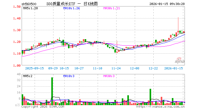 500质量成长ETF(560500)业绩比较基准为中证500质量成长指数收益率,管理人为鹏扬基金管理有限公司,基金经理为施红俊,成立(2021-08-04)以来回报为28.23%,近一个月回报为9.14%。