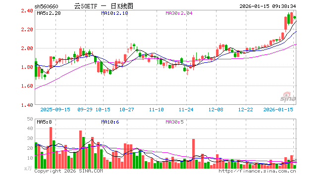 1月15日,云50ETF(560660)开盘跌1.81%,报2.329元。云50ETF(560660)重仓股方面,新易盛开盘跌0.99%,中际旭创跌1.65%,中科曙光跌0.45%,浪潮信息涨0.37%,金山办公跌1.54%,紫光股份跌0.66%,恒生电子跌2.36%,润和软件涨1.69%,拓维信息涨4.82%,润泽科技跌6.18%。
