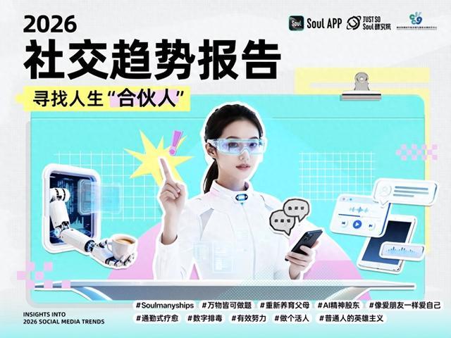 近日,SoulApp旗下JustSoSoul研究院联合复旦大学相关研究团队,基于9812份有效问卷及平台海量多模态内容深度分析,正式发布《2026年社交趋势报告》。报告以“寻找人生‘合伙人’”为核心,其中AI的角色跃迁成为核心亮点,深刻揭示了Z世代在代际互动与自我成长中的社交新变革。