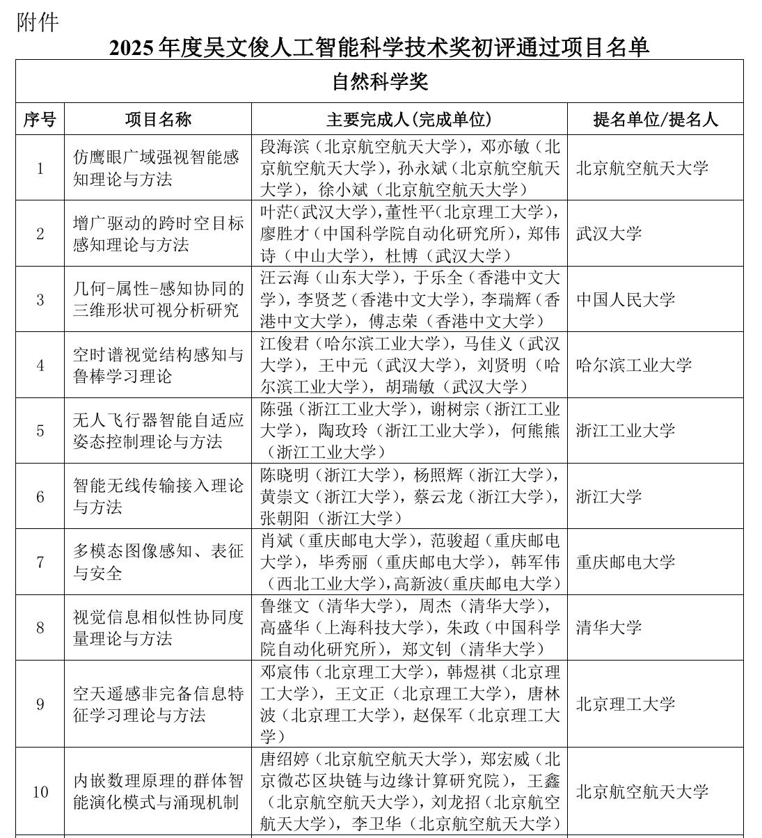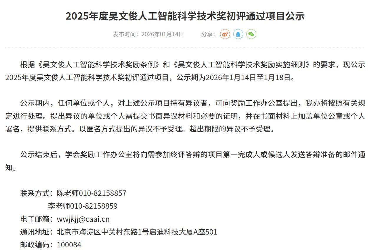 2025年度吴文俊人工智能科学技术奖124个项目通过初评,最终奖金高达100万的“最高成就奖”会花落谁家? 近日,人工智能学会公布了2025年度吴文俊人工智能科学技术奖初评结果,并进行了公示。本次公示共有124个项目,其中自然科学奖36个项目、技术发明奖16个、科技进步奖57个、青年科技奖15个。 2025年公示的项目,相较往年有所增加。清华大学成为了最大的赢家,共9个项目通过初评;紧跟其后是北京航空航天大学和哈尔滨工业大学。至少2个以上项目的单位中,除了985大学外,杭州电子科技大学、深圳大学和浙江工业大学等3所“双非”也在列,这个成绩为他们“双一流”评选也增加了砝码。 本次公示中,奖金最高的最高成就奖、以及杰出贡献奖并未公开,过去最高成就奖都奖励了陆汝钤、潘云鹤、郑南宁、徐宗本等行业“大拿”,2025年会不会是Deepseek?我们静待花开。