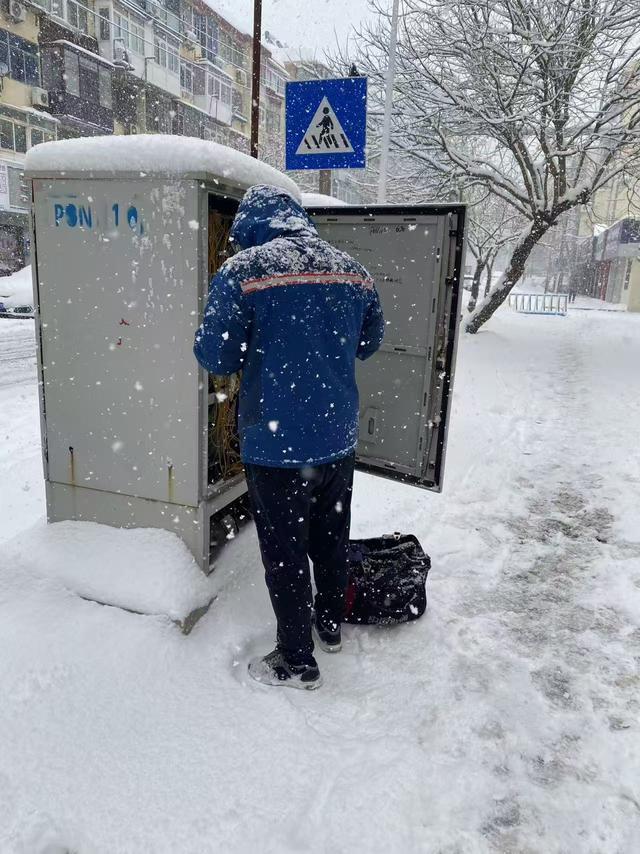 暴雪导致部分区域供电中断、道路封闭、线路积雪覆冰,基站退服和光缆中断风险急剧上升。烟台联通保障人员化身风雪中的“通信卫士”,顶风冒雪,克服严寒与路滑等多重困难,展开了一场与时间赛跑的抢修攻坚战。他们对党政军机关、应急指挥中心、交通枢纽、医院等重要场所实施最高等级保障,开展不间断巡查与值守;在车辆无法通行的区域,维护人员肩扛手提发电机与光缆设备,徒步跋涉深入故障点,清理积雪、熔接光缆;为应对大面积市电中断,他们争分夺秒调配、运送发电油机,确保基站持续供电,并加强所有户外通信设施的防冻保暖巡检。与此同时,公司积极与电力、交通等部门高效协同,合力清除障碍,为抢通线路争取宝贵时间,全方位守护着城市通信脉络的坚韧与畅通。