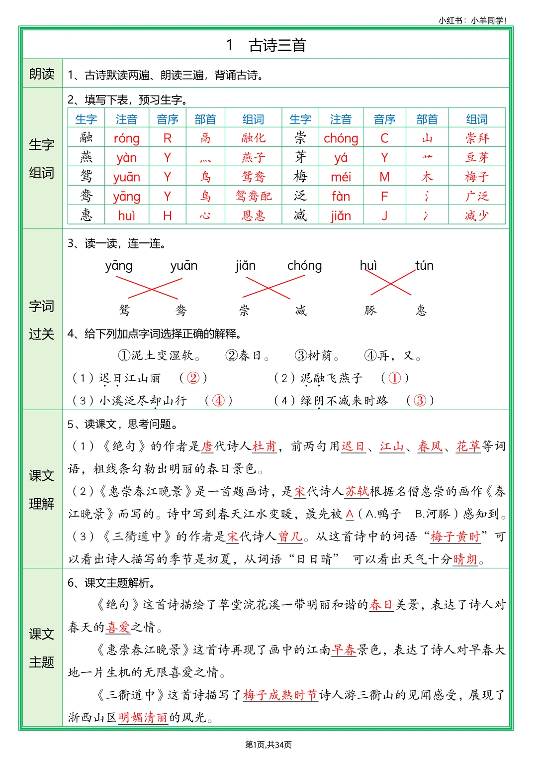 🎈 本预习单为原创整理成果,未经授权,严禁转载至各类网络平台或用于商业用途,侵权必究。