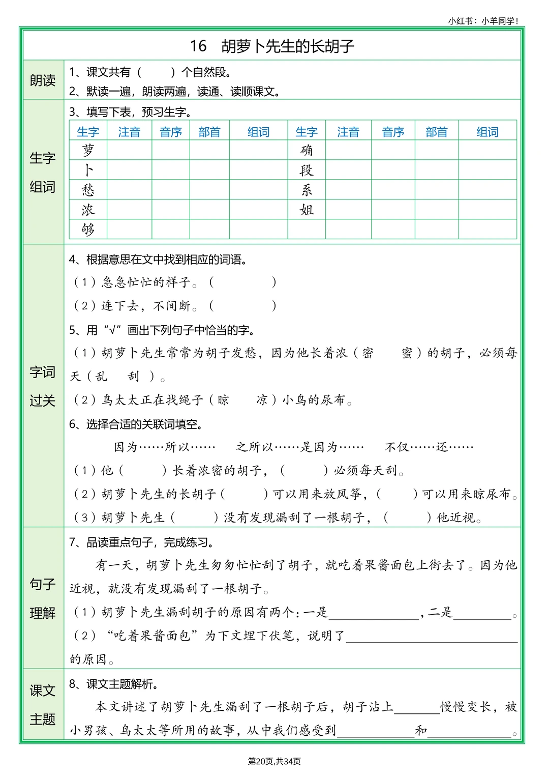 ▪️第16课《胡萝卜先生的长胡子》〔原旧版三上课文〕
