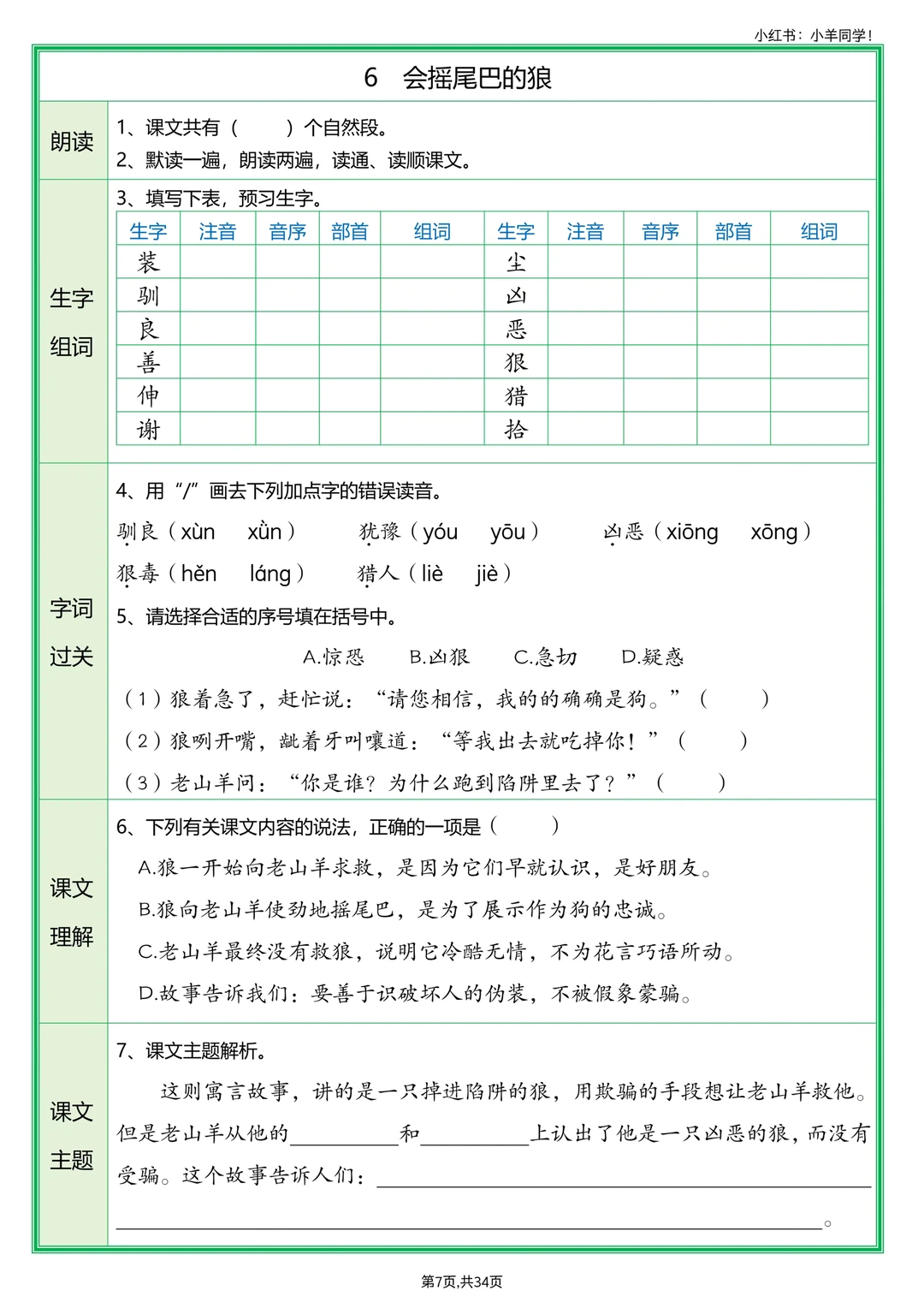 ▪️第6课《会摇尾巴的狼》
