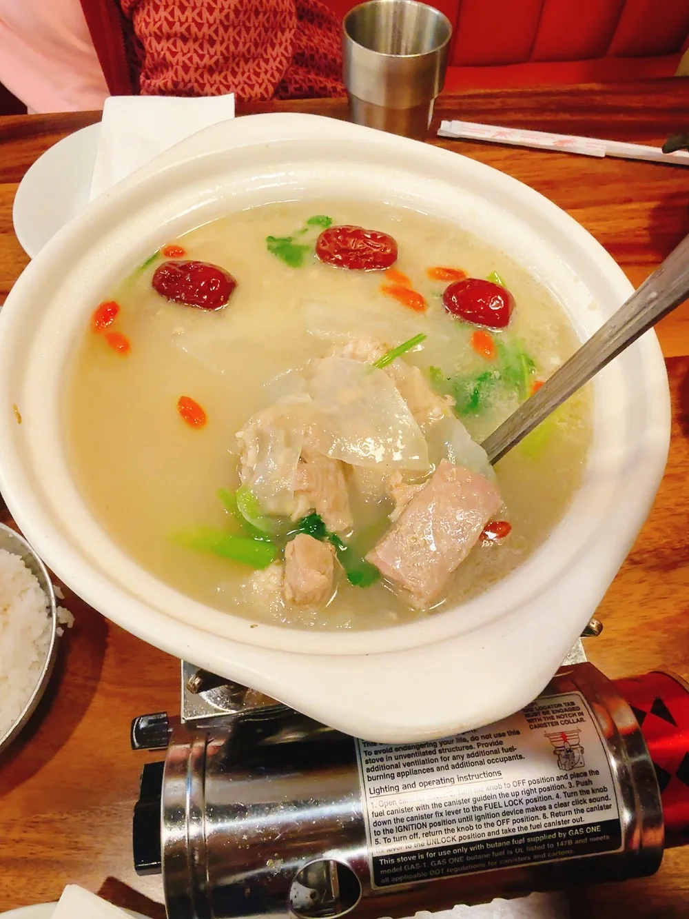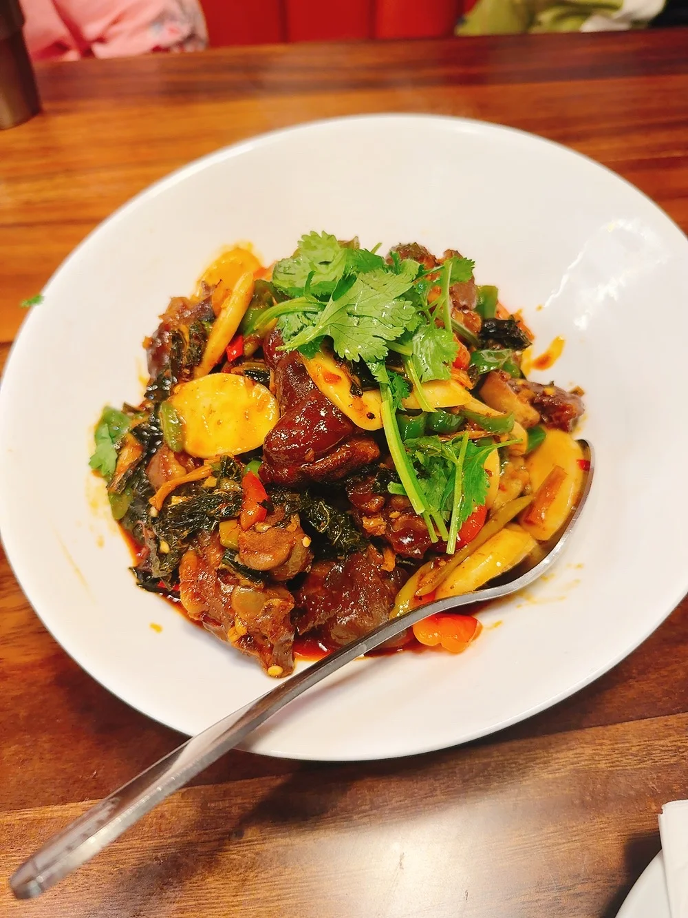 我们平时经常点这家的外卖,半年内去了五次了,这次听说出了新菜,特地过来吃。问了店员才知道,他们现在几乎每周都会出几道新菜,而且店里还悄悄重新装修过了。人均大概$30左右,我们四个人四菜一汤吃的好撑,还打包了一些回去,我们点的菜比较偏辣很对爸妈的胃口 我是猪猪探长,关注我,每周分享湾区吃喝玩乐 🌟年糕猪蹄花(图2)做的很糯 🌟妈妈平时不喜欢牛舌,但是生爆牛舌(图3)炒的很入味,没有任何腥味,她很喜欢 🌟风味牛小排(图4)上面的孜然辣椒粉让牛仔骨很入味 🌟血肠(图5)闻起来居然有臭豆腐的味道,吃起来也是很香,没有任何腥味 🌟冬瓜排骨汤(图6)好养胃,也解辣。每桌还送了酒酿圆子汤(图7) 📍外婆家常菜 19541 Richwood Dr, Cupertino, CA 95014