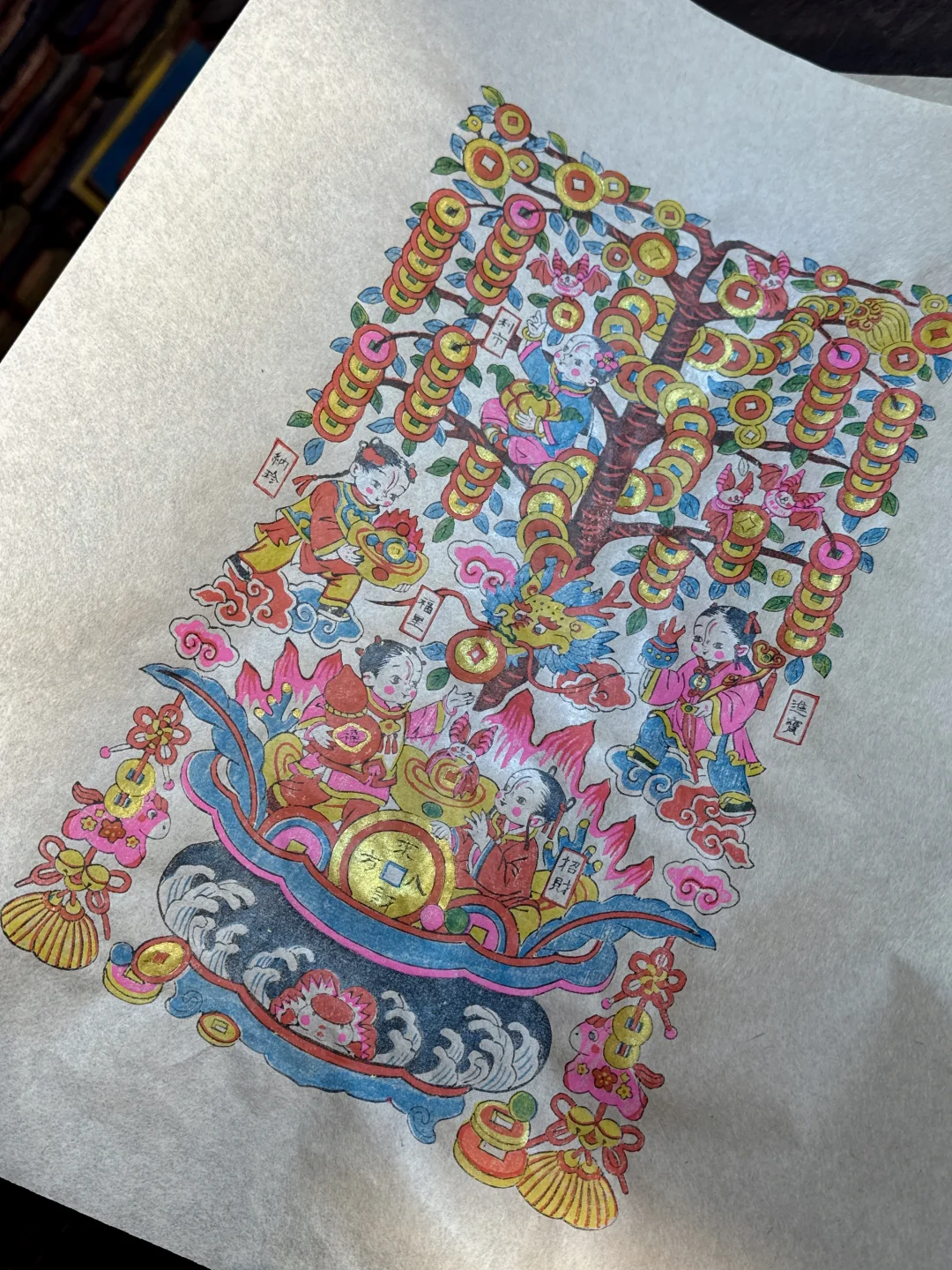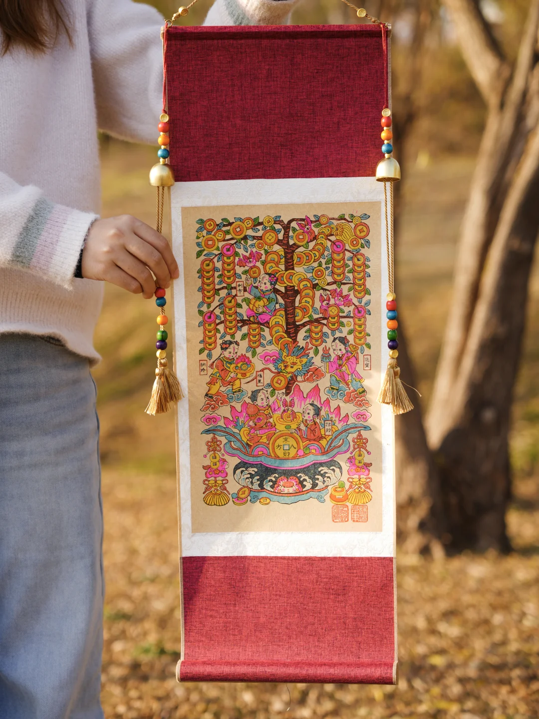 向大家汇报下 这一批的印制已经完成 在装裱和装盒啦 这周就能发出一批~ 手工印制和装裱时间长 也是这段时间预售的原因 每一张五福摇钱树的印制 要经过至少5块板子.. 它是新年的开运挂件 也是可以增添氛围感的家居装饰 挂在玄关一进门就能看到 迎福入门 好意头特别稳 挂在客厅 画面很满但不乱 象征家运在场 福气聚得住