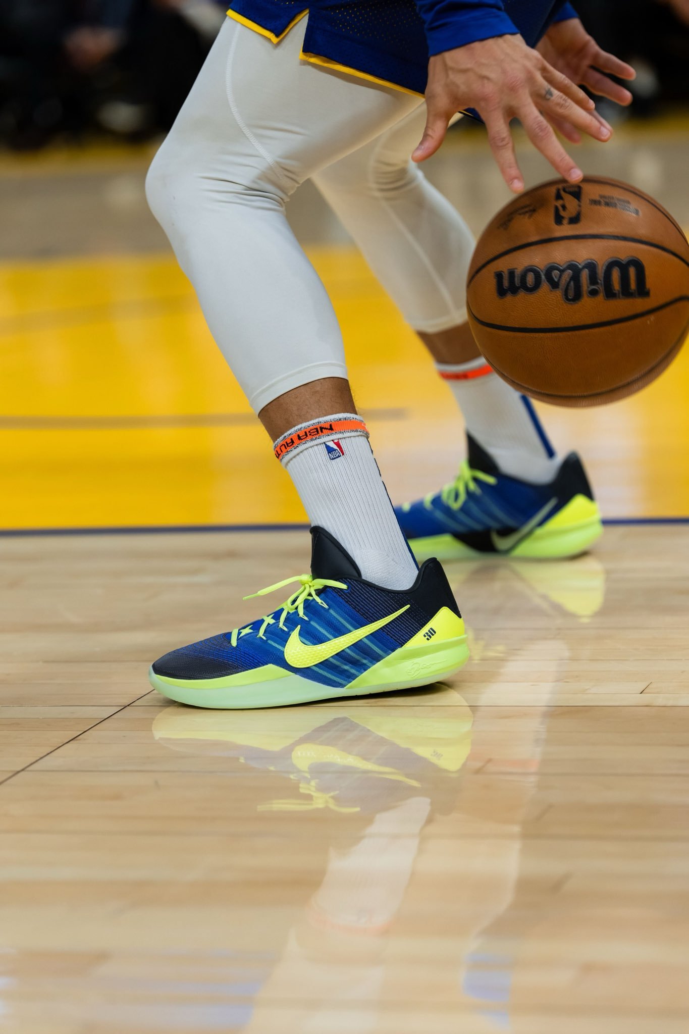 库里今天上脚Nike Sabrina 3和以往不同的是 这双鞋跟上印有"ICDAT"和"WSC"勇士vs开拓者库里