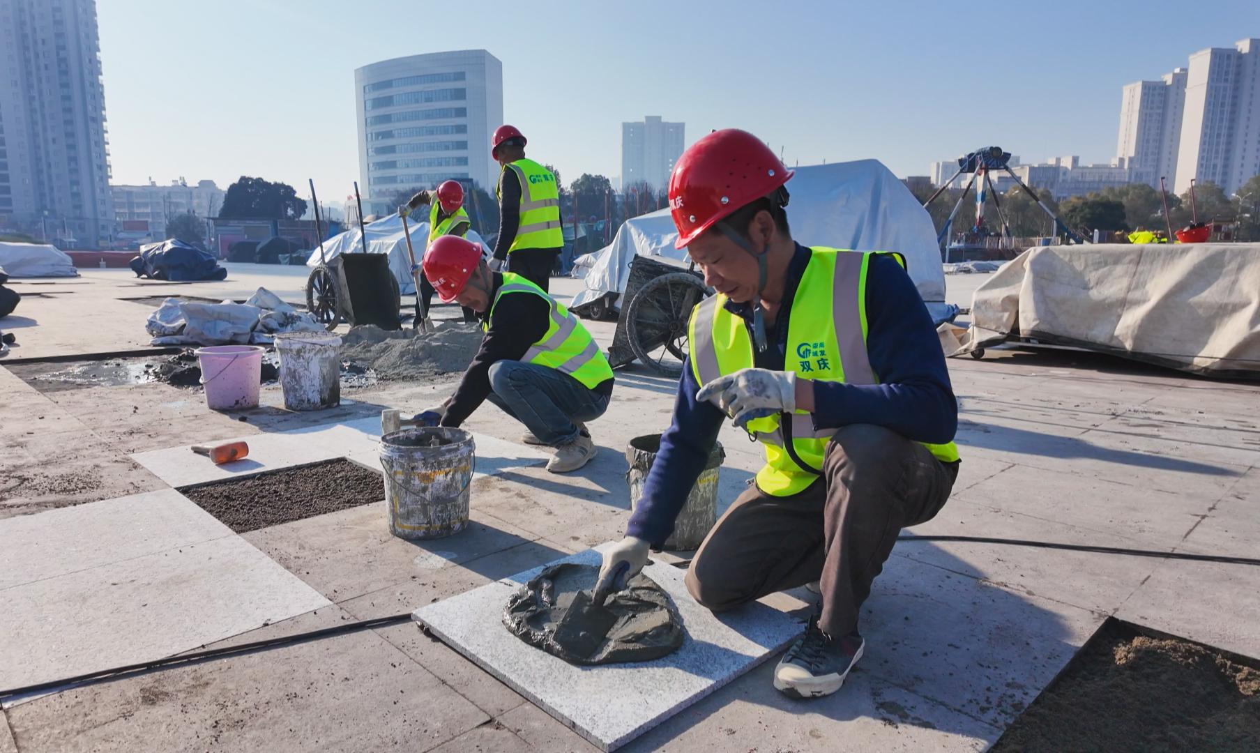 1月14日,崇阳县大集广场改造施工现场一派忙碌。工人们正对广场上原有破损、松动的“跷跷板”地砖进行系统性更换。作为崇阳县城区重要公共活动空间,大集广场承载着节庆庆典、文艺汇演、群众集会等多重功能。因长年高频使用,广场舞台及其周边区域出现地砖破损、基层沉降等现象,既影响整体环境,也存在一定安全隐患。此次改造将舞台区域纳入维修重点,通过基层夯实、面砖镶贴和塑胶面层铺设等工序,对舞台及周边区域进行系统性修复与功能提升。