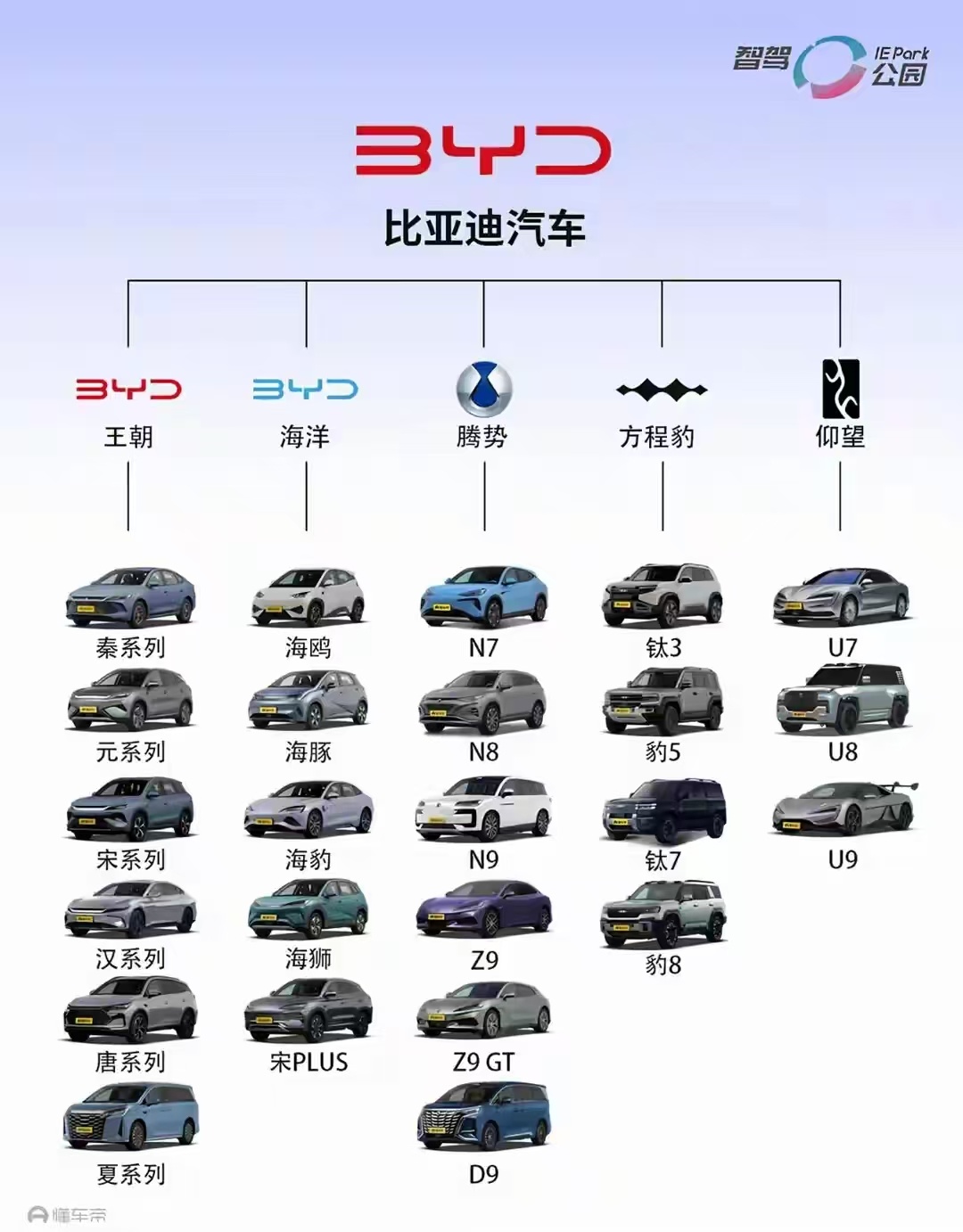 比亚迪的产品矩阵,最核心的逻辑是用差异化定位来覆盖全价格区间与用户需求:王朝系列以“秦汉唐宋元”为核心,主打家用与主流市场;海洋系列则通过“海鸥、海豚、海豹”等命名,强化年轻化与新能源特质,产品形态更灵活腾势、方程豹、仰望这些高端品牌的布局,则是向上的突破腾势聚焦豪华新能源市场,以MPV与高端SUV切入家庭与商务场景;方程豹主打“个性化+硬派”,满足小众但高增长的越野与性能需求;仰望则是技术旗舰,锚定超高端市场,用极致体验树立品牌高度这种分层布局的价值在于,既避免了单一品牌的价格战内耗,又通过不同子品牌的调性差异,精准匹配不同用户的圈层认同比如,追求性价比的家庭用户会关注王朝,热衷科技体验的年轻人会被海洋吸引,而有身份彰显需求的用户则可能看向腾势或仰望,从而实现全价位全定位的产品序列覆盖